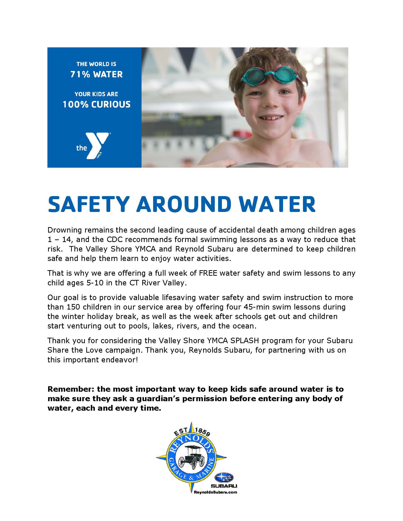 Reynolds' Subaru is Proud to Support the Valley Shore YMCA