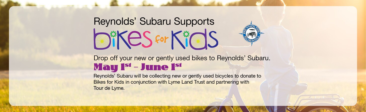 Reynolds' Subaru will be collecting new or gently used bicycles to donate to Bikes for Kids in conjunction with the